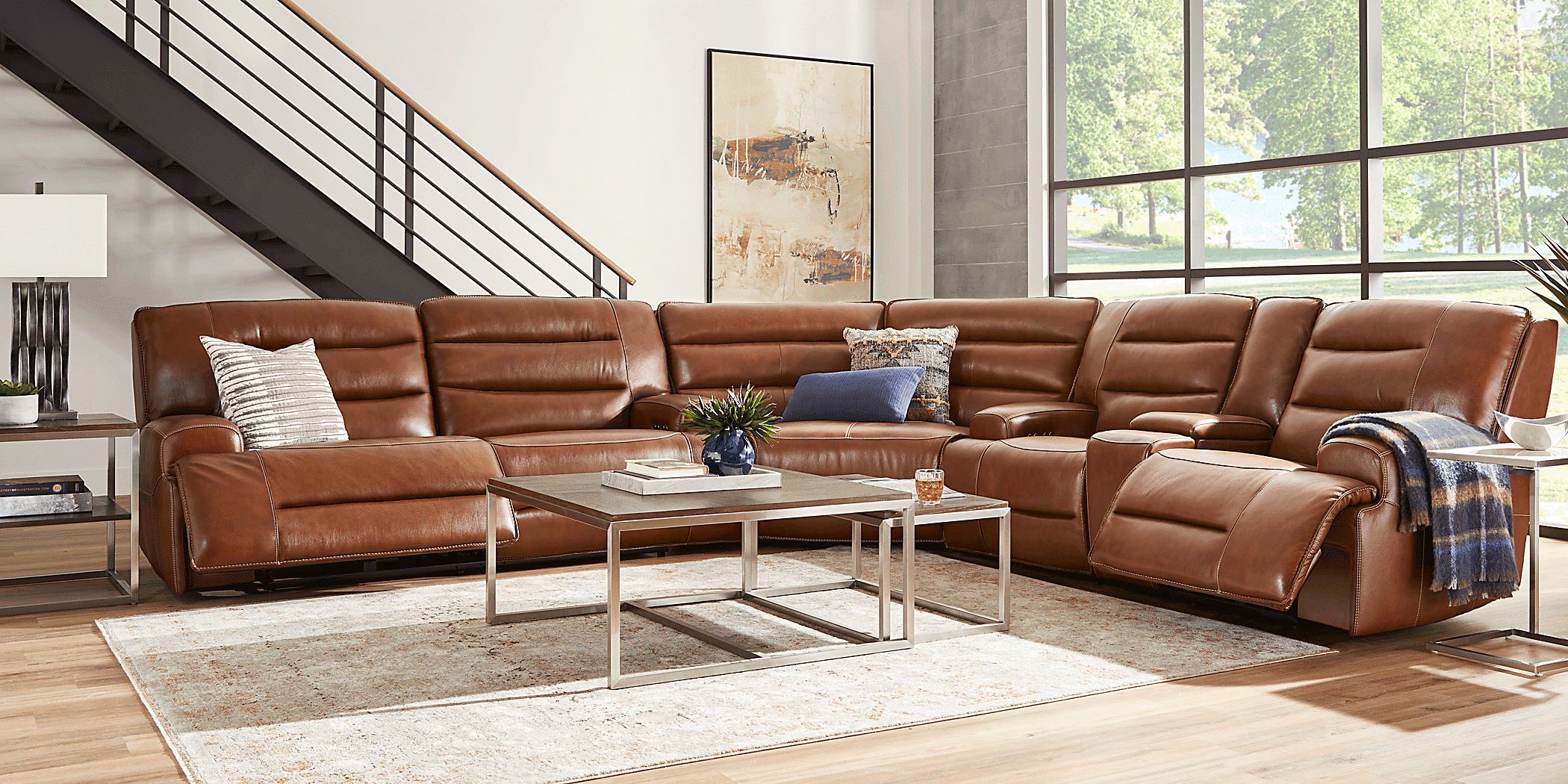 Davoli Caramel Leather 3 Pc Dual Power Reclining Sectional Rooms To Go